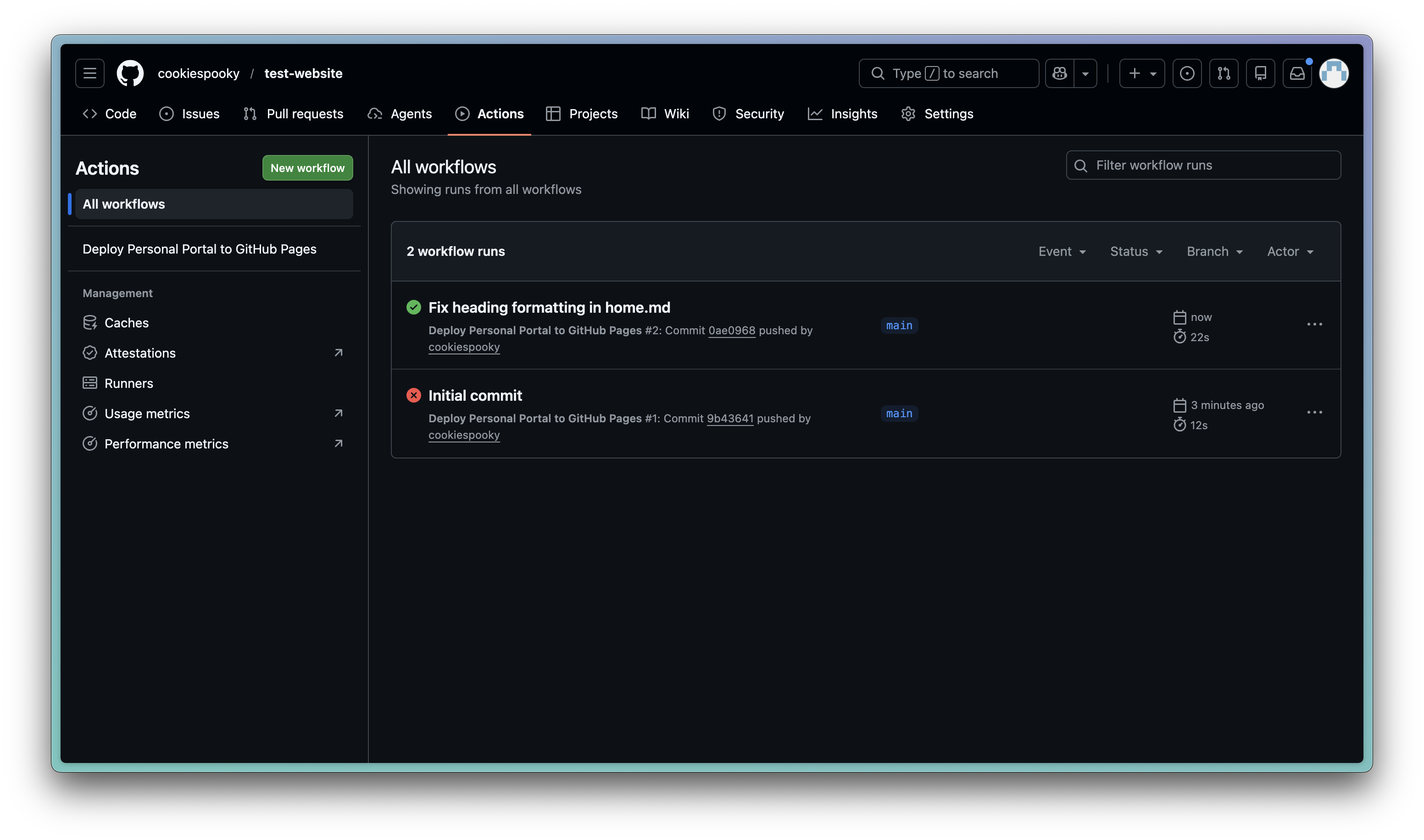 main. Сборка занимает менее минуты. Процесс можно наблюдать в разделе Actions.